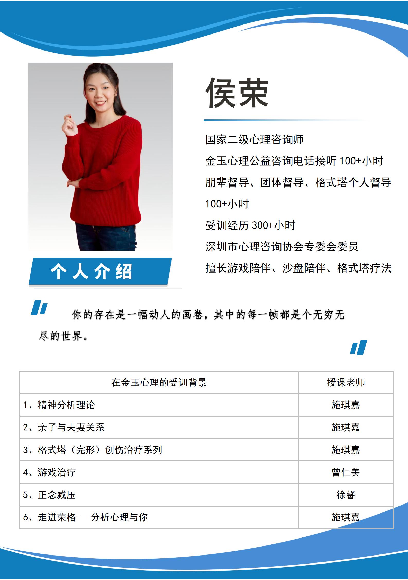金玉心理咨询侯荣老师简介