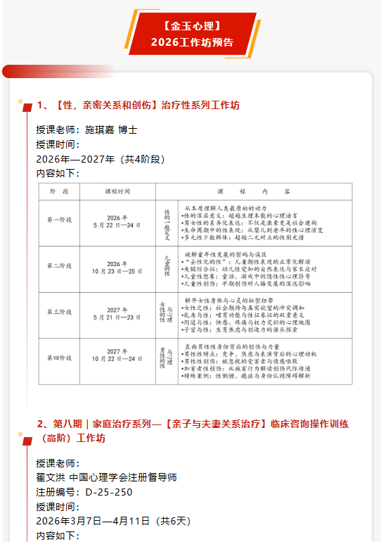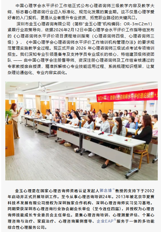 【招生简章】金玉心理第二期心理咨询师四级培训班
