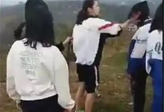 2017年3月30日,四川彭州隆丰中学,一位黑衣女生在35秒内扇绿衣女生耳光14次,并脚踹身旁另一女生。