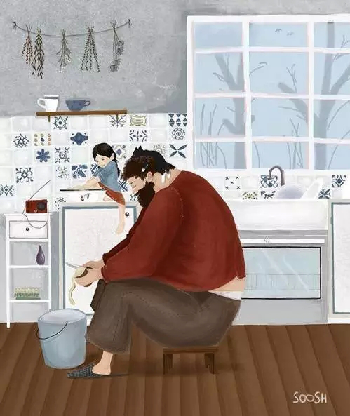 大概每个孩子都想要这样的爸爸,一位叫做Snezhana Soosh的年轻画家,她把记忆中爸爸陪伴自己的场景,画成了一张张超暖的漫画。