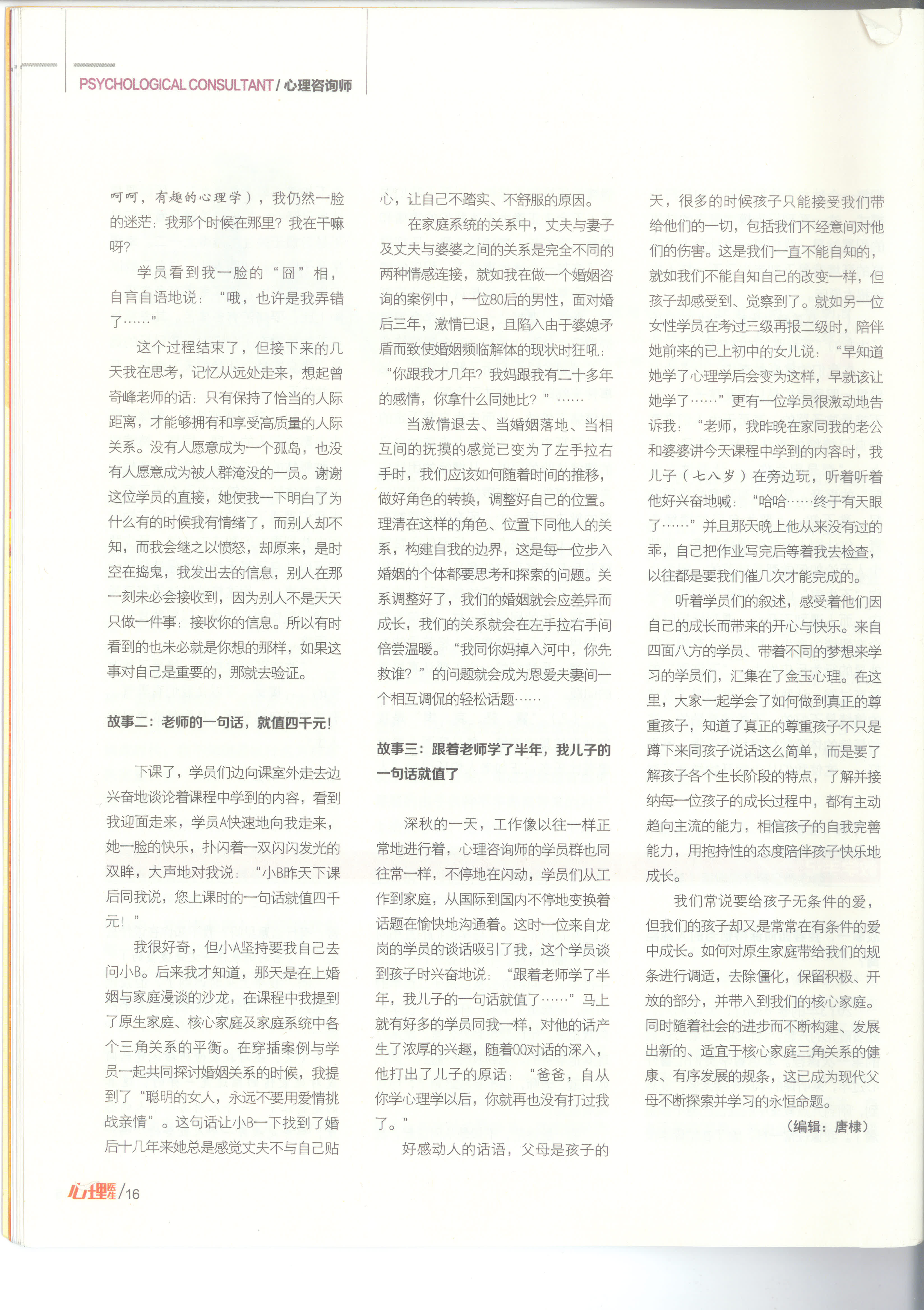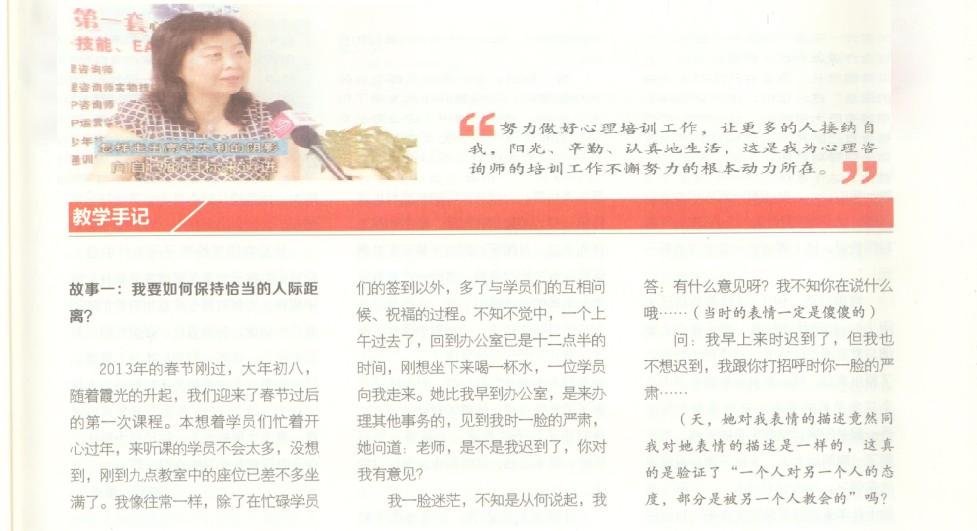 深圳金玉心理翟文洪老师于国家发行期刊--心理医生刊文转录之:教学手记