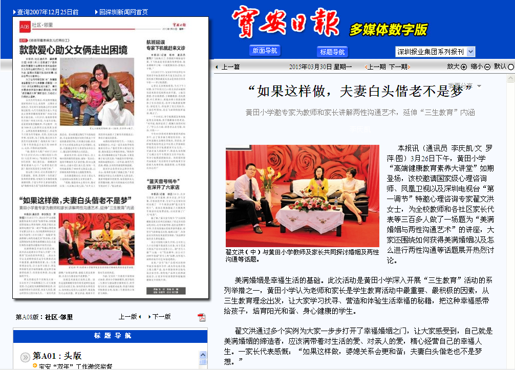 心理咨询师培训金牌讲师翟文洪_宝安日报:“如果这样做,夫妻白头偕老不是梦”