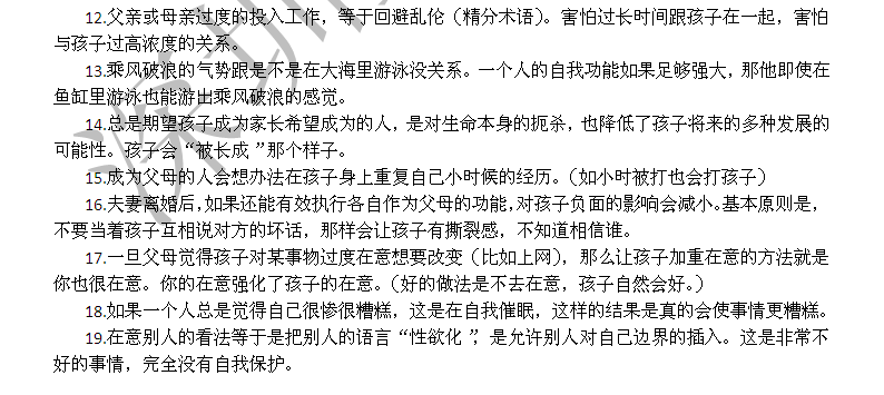 家长对孩子的高要求本身就是虐待,孩子变成家长期望的奴隶,是“被活着”。不断的要求孩子优秀本身就是对孩子表示-你不优秀,孩子就会在“我不行”的负担下往前走(而不是在“我很行”的状态下轻松的成长),孩子总是在努力克服自己的“不行”,在极端的情况下就有可能会导致自杀的行为出现。(试想那些为了父母的期望考上名校后,却陷入抑郁甚至自杀的学生)。