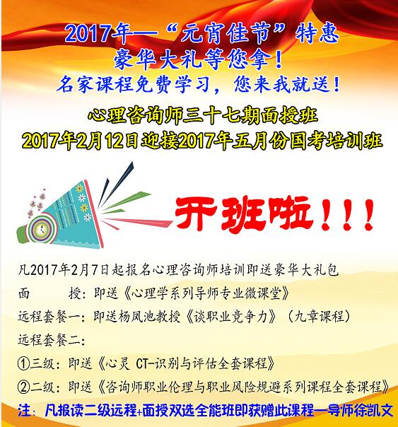 迎接17年5月心理咨询师培训国考第三十七期面授/远程培训班新班特惠招生