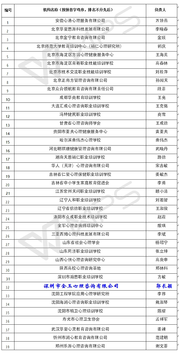 心理咨询基础培训对接机构名单(第一批39家)