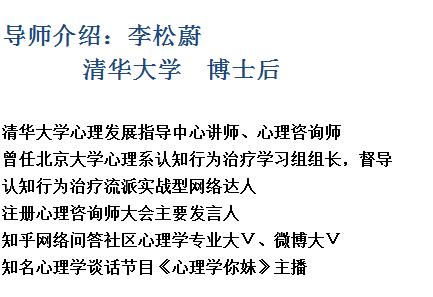 http://www.jinyuxinli.com/index.php?ac=article&at=read&did=959 李松蔚博士后《认知行为治疗CBT理论及案例实战训练