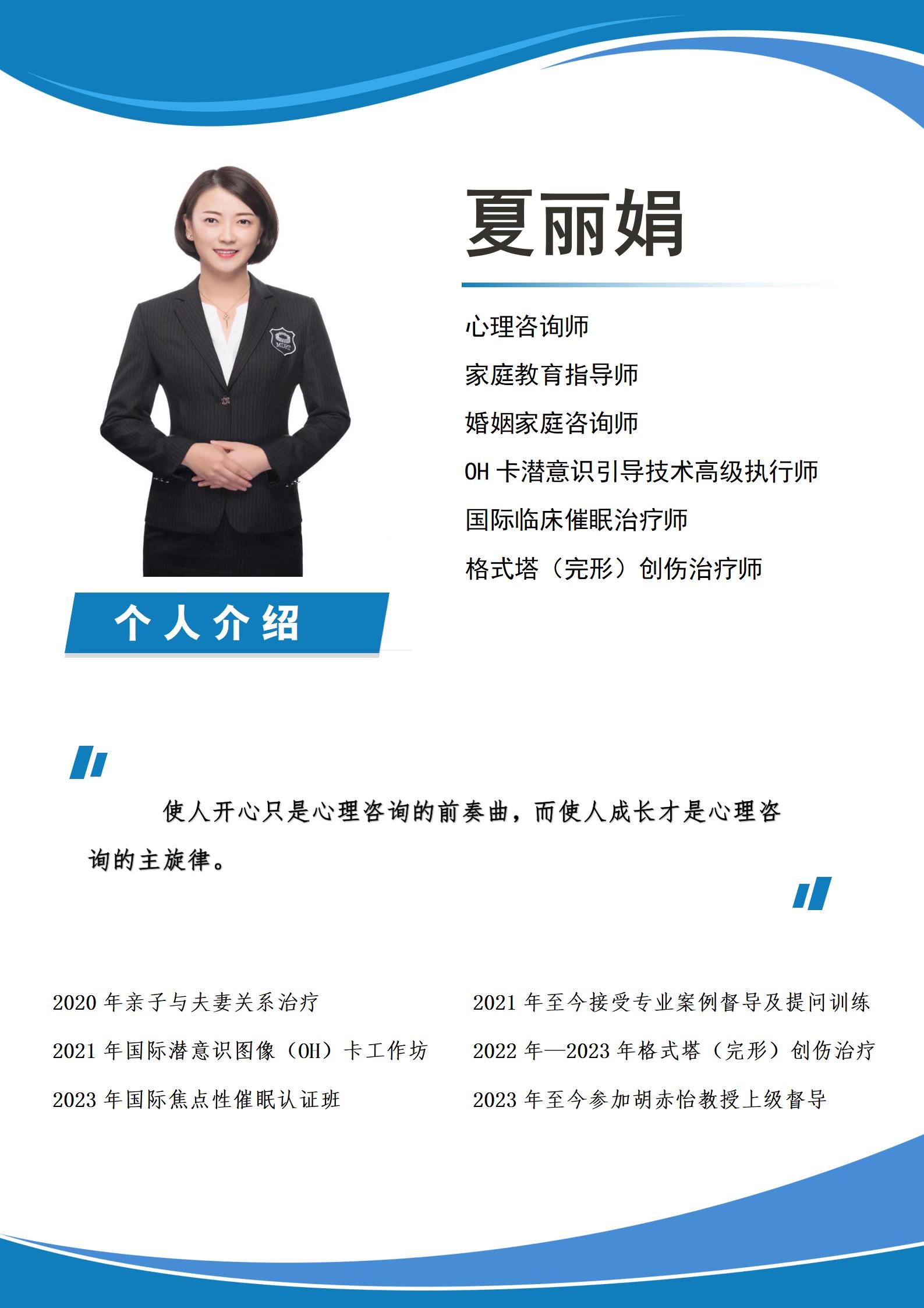 金玉心理咨询师夏丽娟老师简介