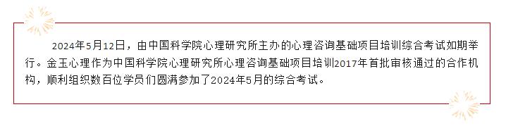 喜报 金玉心理--2024年5月心理咨询基础项目培训考核捷报&精彩回顾