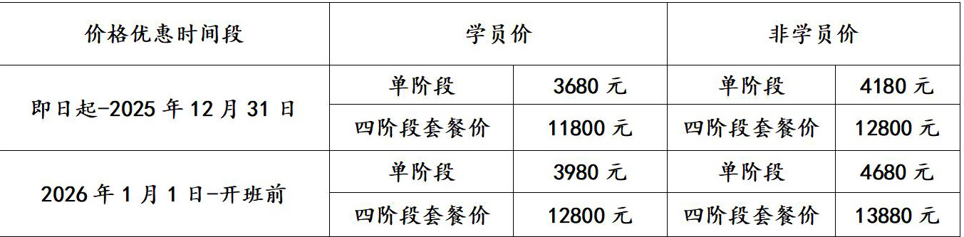 3、本课程仅限于本阶段开课前1个月办理转学或退费手续(可退款为已交费用的 80%),此后不接受任何理由的转班或退费申请,敬请谅解。