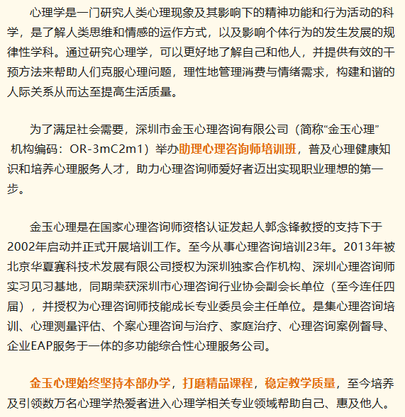 【招生简章】金玉心理2025年助理心理咨询师培训班
