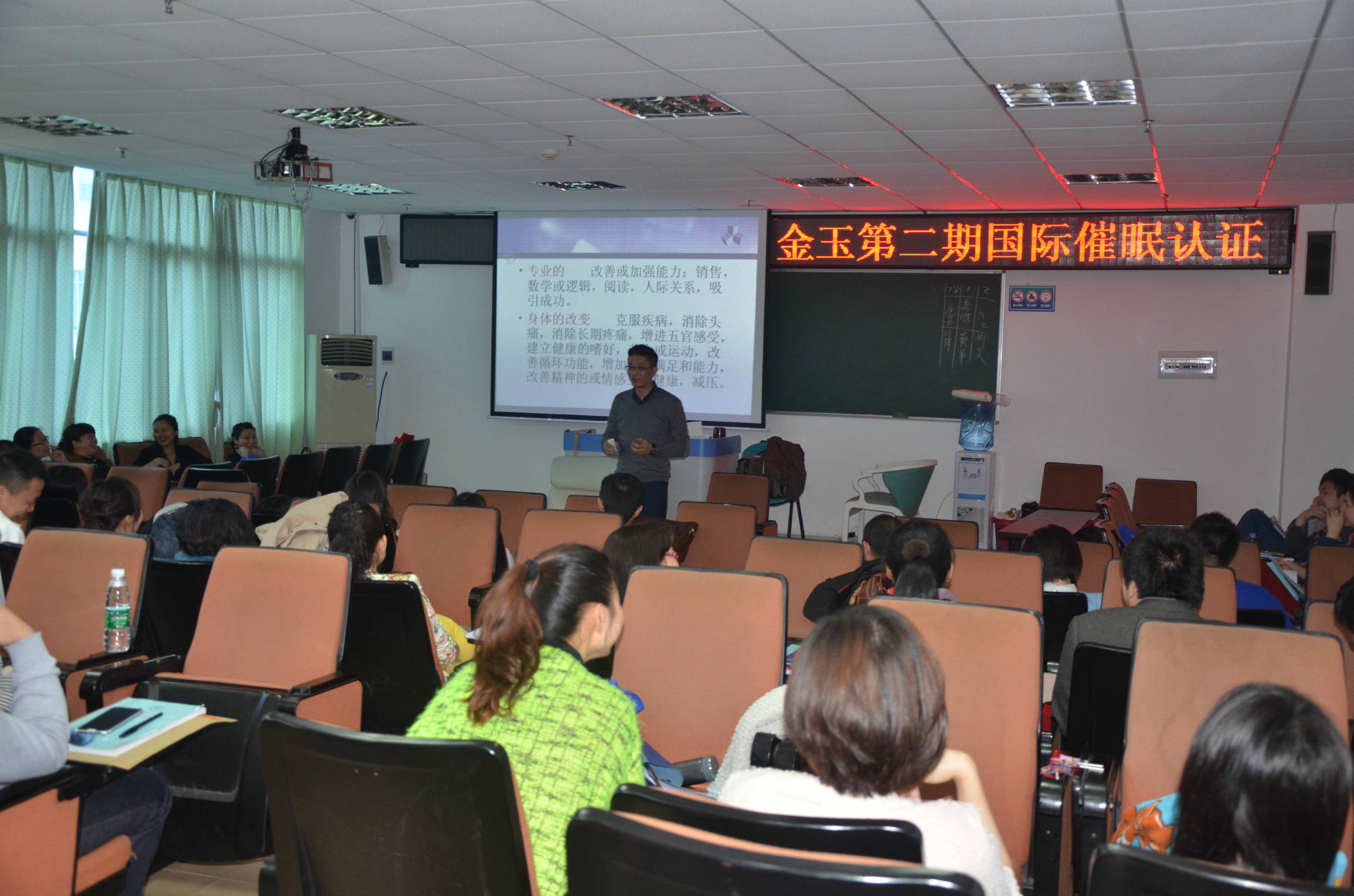 2014年2月27日至3月2日,金玉心理为了拓展学员视野,为有需要的学员提供了最低成本的成长平台,利用华夏有效资源的整合,邀请了亚洲催眠第一人、来自台湾的蔡仲淮老师前来深圳开办了第二期催眠师国际认证培训班,为广大的金玉学员们揭开催眠的神秘面纱。。。。